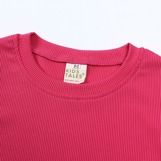 Girls' Short-sleeved Shirt Bell-bottom Pants -Two-piece Set